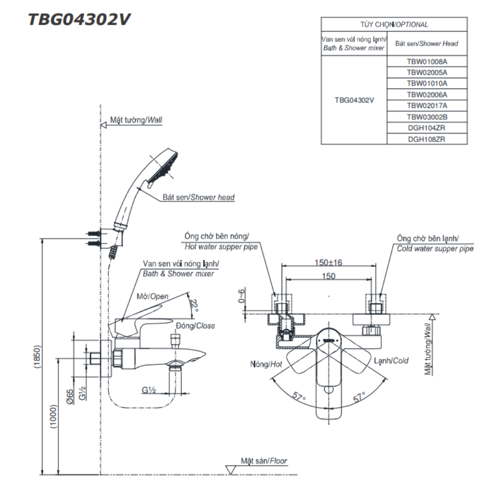 Bản vẽ kỹ thuật củ sen tắm nóng lạnh GA Series TOTO TBG04302VA