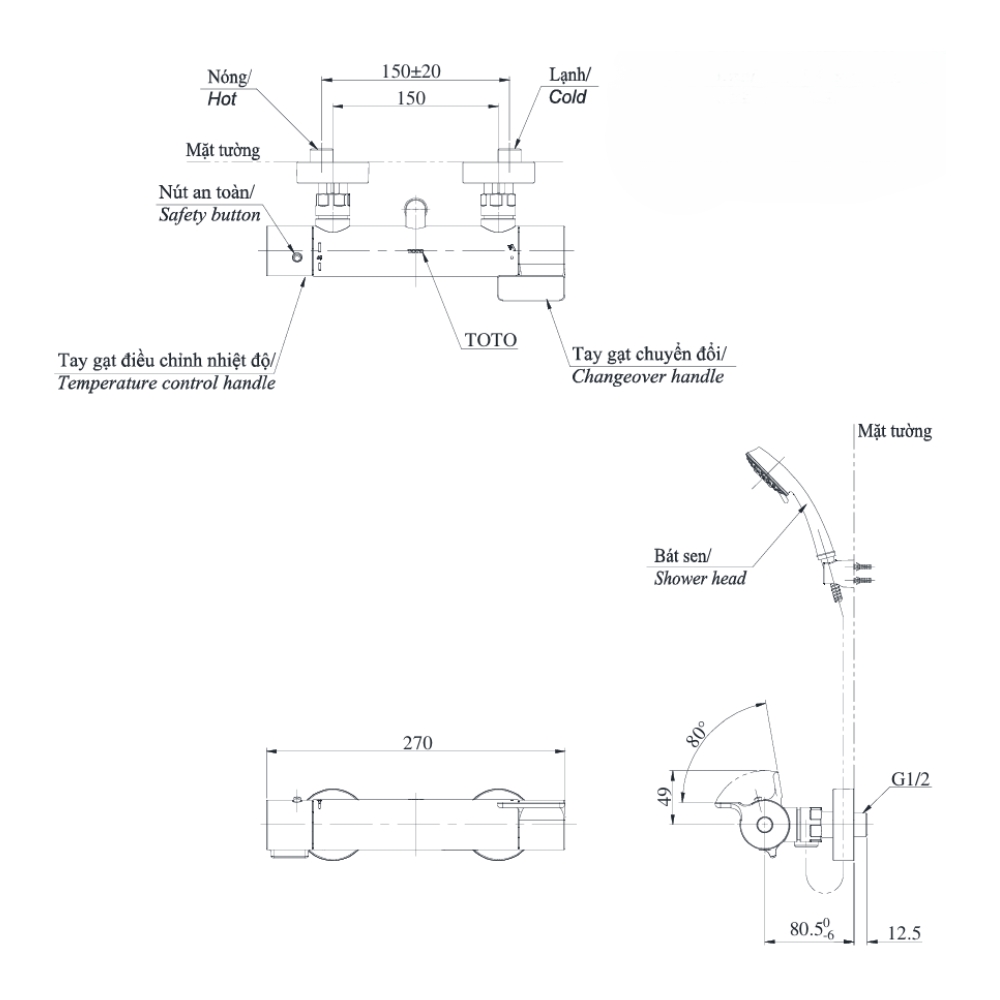 Thông tin sản phẩm củ sen tắm nhiệt độ TOTO TBV03431V