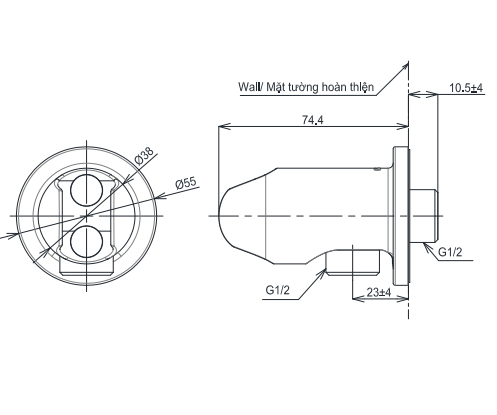Thông tin sản phẩm gác sen kèm cút nối tường dòng G dáng tròn TBW07021A