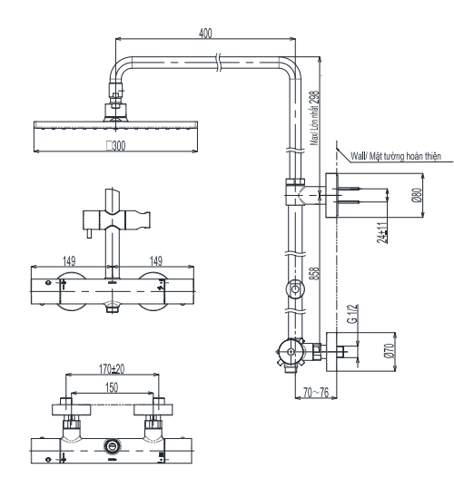 Lưu ý: Không bao gồm bát sen cầm tay, vòi xả bồn
